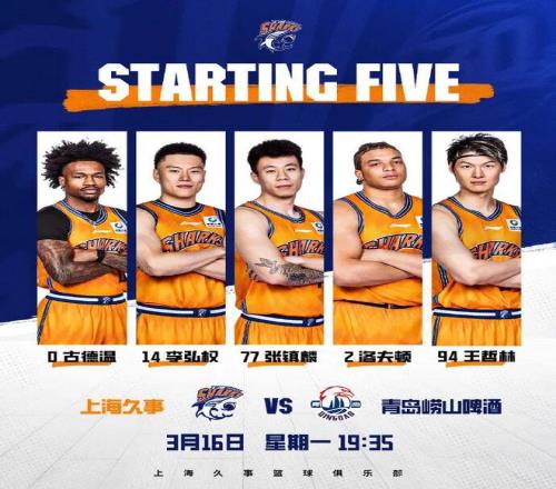 今晚,上海男籃坐鎮(zhèn)主場(chǎng)迎來CBA常規(guī)賽第26輪迎戰(zhàn)青島男籃的比賽。此役大鯊魚先發(fā)五人為:古德溫、李弘權(quán)、張鎮(zhèn)麟、洛夫頓和王哲林。
