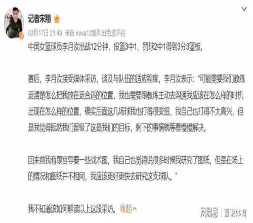 情況不妙!李月汝直言:教練不理解,我打得不太高興,宮魯鳴被質(zhì)疑!萬(wàn)眾矚目的女籃世預(yù)賽小組賽已經(jīng)打完,看了直播的...