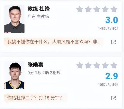 對于廣東男籃的這場失利,媒體人“麥穗豐”也在社交媒體上表達(dá)了自己的看法?!胞溗胴S”表示,廣東男籃慘遭新疆男籃逆轉(zhuǎn),是在指揮端出現(xiàn)了大問題。雖然“麥穗豐”并沒有提杜鋒,但意思卻非常明顯?!胞溗胴S”對杜鋒的用人進(jìn)行了質(zhì)疑,表示讓徐杰在第二陣容里擔(dān)任純投手的角色,這樣的用法很離譜。決戰(zhàn)時刻,(杜鋒)同時派上張皓嘉和杜潤旺,更是形同“自刎歸天”。很多廣東球迷也對杜鋒非常不滿,賽后給他打出了3.0的評分,這個分?jǐn)?shù)已經(jīng)非常低了。