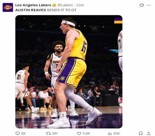 湖人官方也盛贊里夫斯幫助球隊拖入了加時賽。