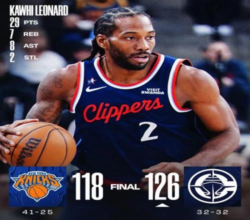 在此前的一場NBA常規(guī)賽中,主場作戰(zhàn)的洛杉磯快船以126比118戰(zhàn)勝了紐約尼克斯。本場比賽后,拿下了兩連勝的快船...