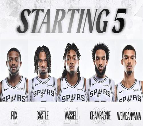 ——??怂?、文班亞馬、卡斯爾、尚帕尼、瓦塞爾同時在場時,馬刺百回合可以凈勝對手21.3分,這,絕對是爭冠陣容的水平