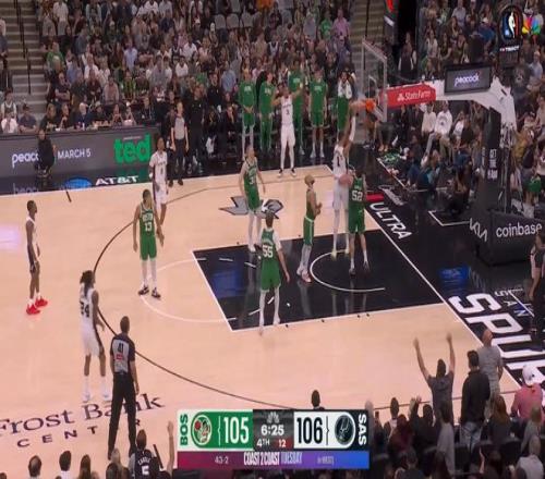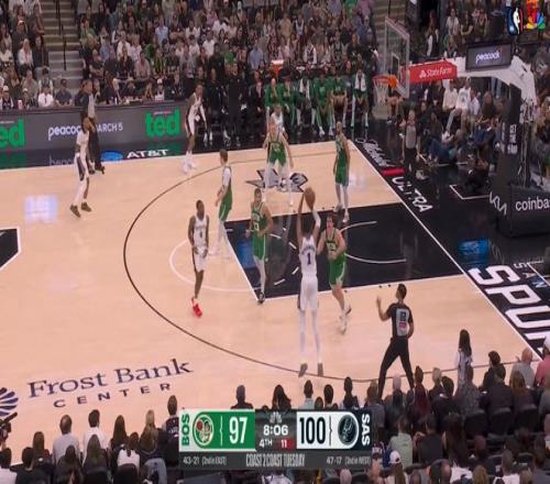 本場馬刺贏得并不容易,第四節(jié),文班亞馬+瓦塞爾聯(lián)手將分差擴大到兩位數(shù),但最后時刻,凱爾特人又在懷特、小羅恩哈珀、塔圖姆帶領(lǐng)下瘋狂追分。