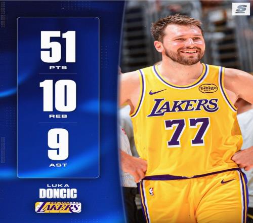 東契奇全場比賽37分鐘,31中17,三分14中9,罰球9中8,拿到51分10籃板9助攻3搶斷1蓋帽,命中率54.8%,三分命中率64.3%,真實命中率72.9%,正負值+15。