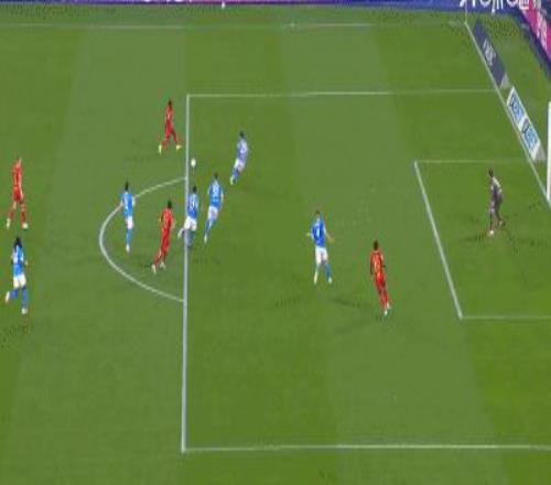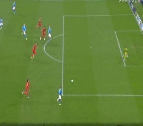 第46分鐘,扳平比分,波利塔諾助攻,霍伊倫搶點破門,那不勒斯1-1萊切
