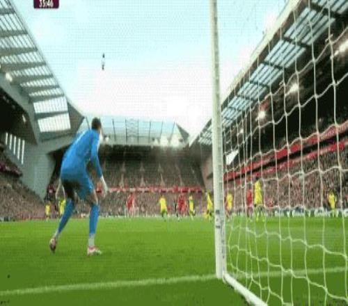 第18分鐘,利物浦獲得前場任意球,索博斯洛伊直接射門,皮球繞過人墻,維卡里奧雖然碰到皮球,怎奈力量太大,無法阻擋皮球入網(wǎng)。