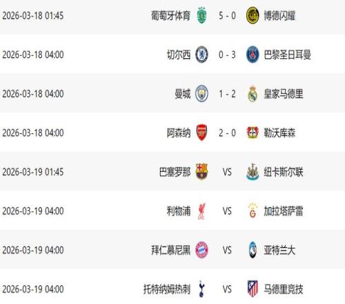 北京時(shí)間3月18日,歐冠16強(qiáng)淘汰賽第二回合進(jìn)行了4場比賽,結(jié)果阿森納、大巴黎、皇馬和葡萄牙體育分別戰(zhàn)勝各自的...
