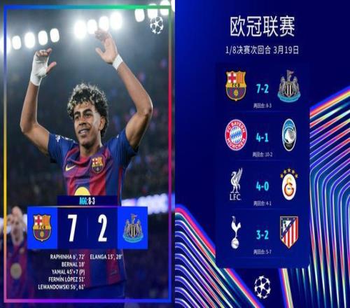 歐冠72慘案!巴薩狂勝紐卡!8強對陣宣告出爐,英超6強還剩2隊