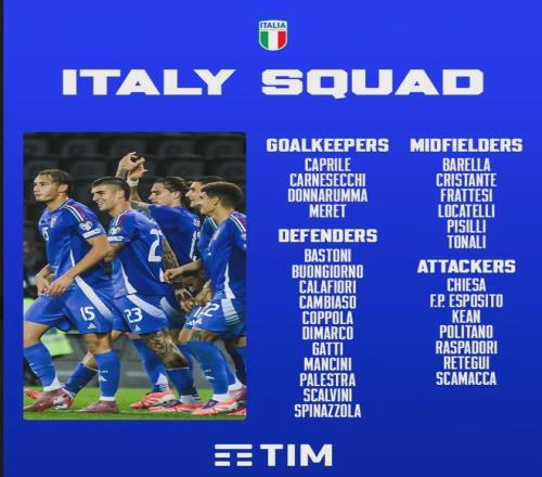 意大利公布了世界杯預(yù)選賽附加賽大名單,卡拉菲奧里入選。