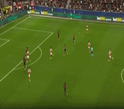 第46分鐘,勒沃庫森球員格里馬爾多主罰角球開出到后點,安德里希頭球破門,勒沃庫森1-0阿森納!