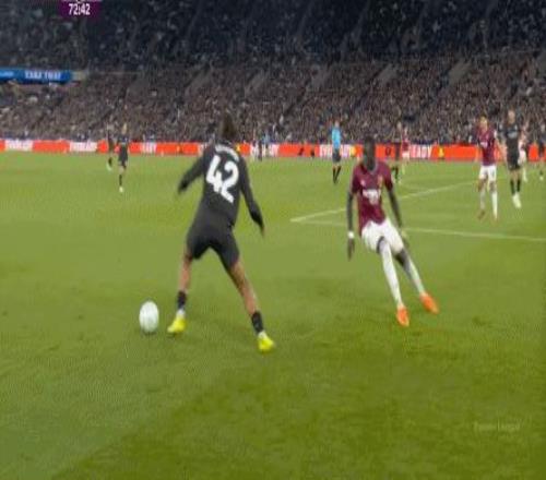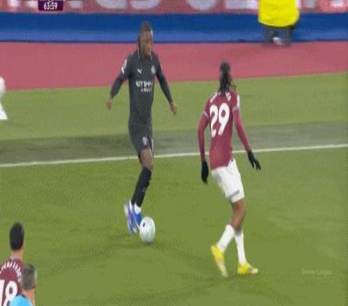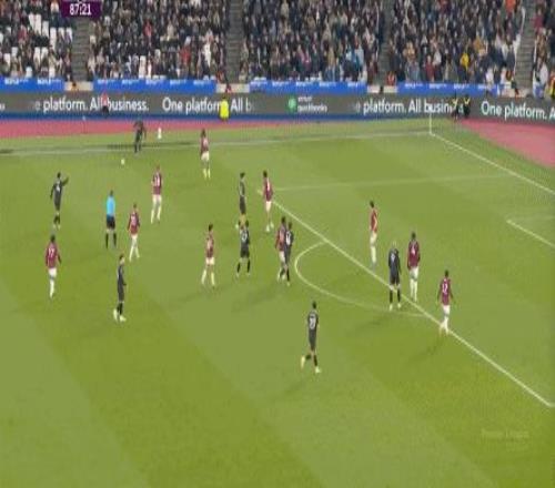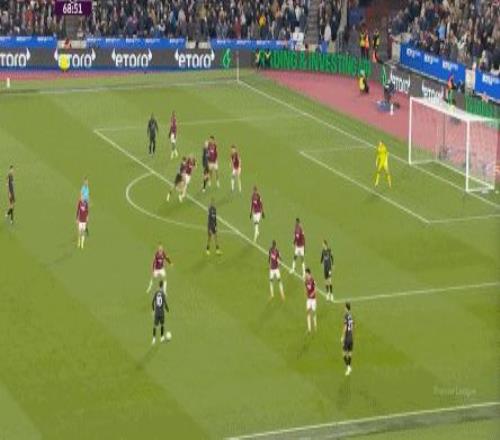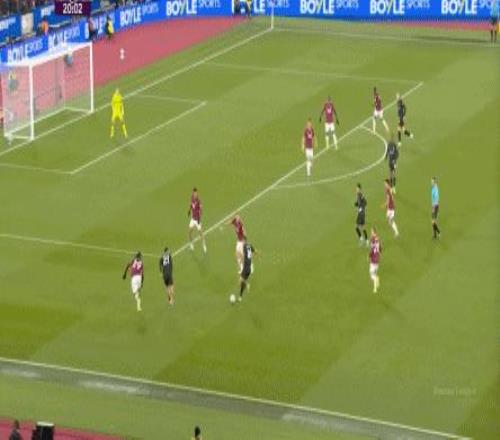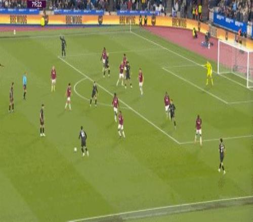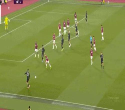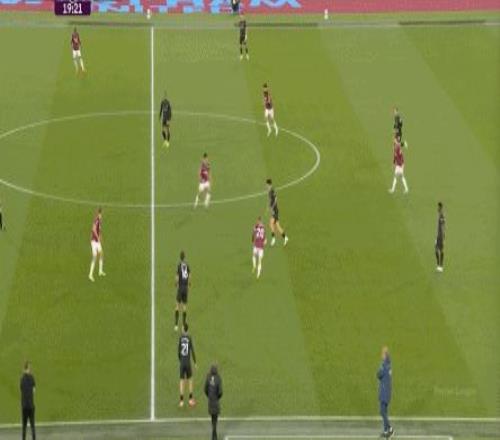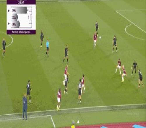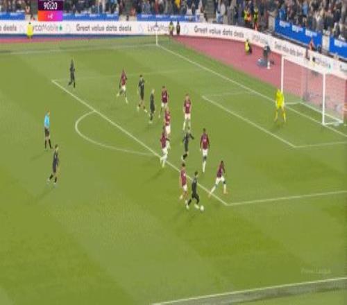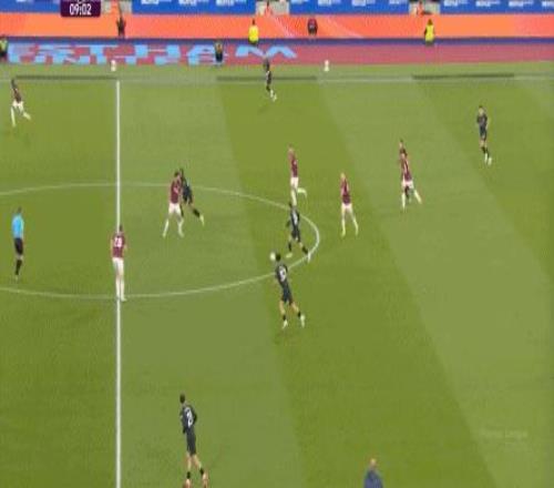 當然了,也不是完全沒有,比如在常規(guī)時間臨近結(jié)束時,曼城還是打出了兩次傳中,就打出了西漢姆聯(lián)的慌亂,從而讓進球看起來接近了一些: