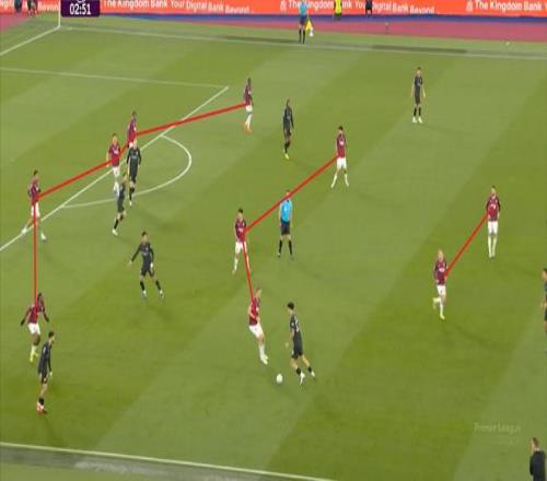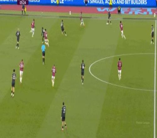 塞門約和隊友的聯(lián)系其實也不好,馬爾穆什和奧賴利一度跑到了一起,這使得西漢姆聯(lián)其實退回了足夠的人數(shù),但來不及同時覆蓋寬度和層次: