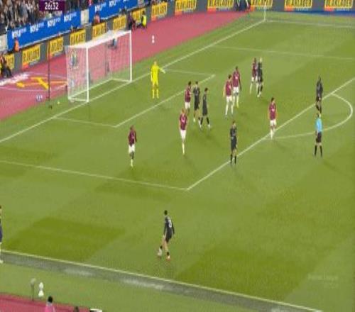 就在這次角球進攻里,西漢姆聯(lián)扳平比分: