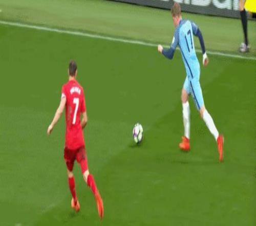 更何況,德布勞內(nèi)還有跑進肋部,橫掃門前的傳中,找隊友和打?qū)κ旨婢?,由此便形成了雙重威脅: