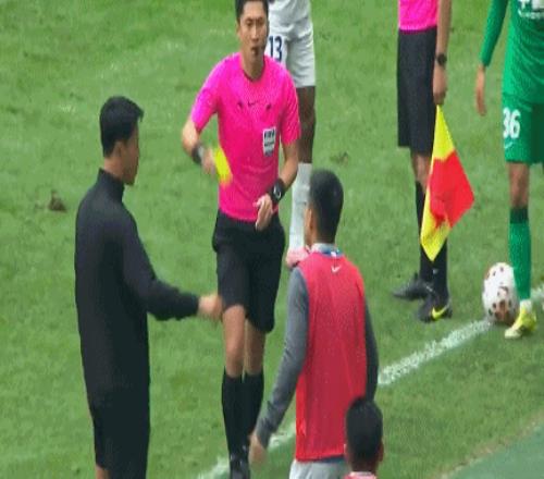 隨后,王世龍起身表示不滿,也被馬寧出示黃牌。馬寧還右手一指,讓王世龍回到替補席。
